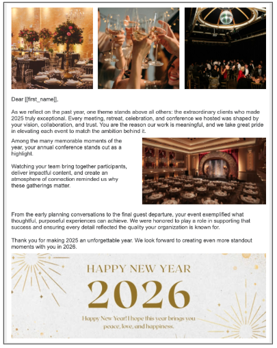 The holidays are the perfect opportunity to connect with your clients, show appreciation, and leave a lasting impression. But let’s face it – everyone sends a generic “thank you” email at this time of year. For hotels hosting groups, meetings, and events, a little creativity can go a long way in making your year-end message memorable, engaging, and even business-savvy.